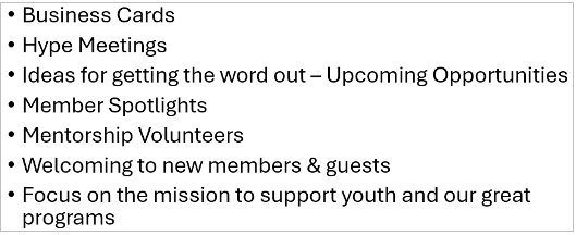 Sharon Fincham has been getting information out to the schools about the Youth of the Month Program, anyone interested in helping recognize these students, please see Sharon.