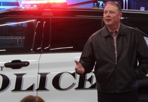 A patrol vehicle was on display in the breakfast area, and Daryl invited everyone to look into it and he provided information about the vehicles. No manufacturer makes sedans for police vehicles anymore; they only make SUVs and trucks. RCPD uses an “Interceptor” model. It is like an Explorer model, but with a larger cooling system and brakes, better performance features, tubro charged, all-wheel drive and these vehicles are tested on Ford's speed course for pursuit rate. The vehicles cost about $50,000 and the equipment costs about $20,000. They are much different from the standard model. They have 19 vehicles and keep them about six years to 100,000 miles or so. They do reuse equipment from older vehicles to transfer into a new vehicles if it will fit the new vehicle and is serviceable. Ford has been good about keeping the new vehicles the same, so equipment can be reused.The patrol vehicle is an officer's office. Vehicles are “hot seated” 24/7, meaning the vehicles are used around the clock every day by different officers. All the vehicles are key coded so every officer can unlock and operate every vehicle. They try to build the vehicle around their officers; they have a computer, radio, radar, lights, and the back of the vehicle is a secure area where they would put someone under arrest. The very rear hatch contains a rifle, flairs, traffic cones, spike strips, etc. The SUV's do a better job of storing equipment that the sedans.